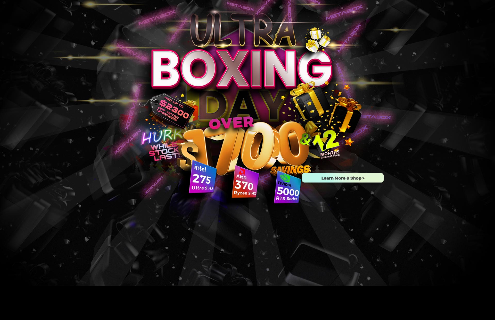 Featuring Intel's latest Ultra 9 24-Core & 14-Core CPU's, tuned with METABOX's trademark sustained high-wattage performance.